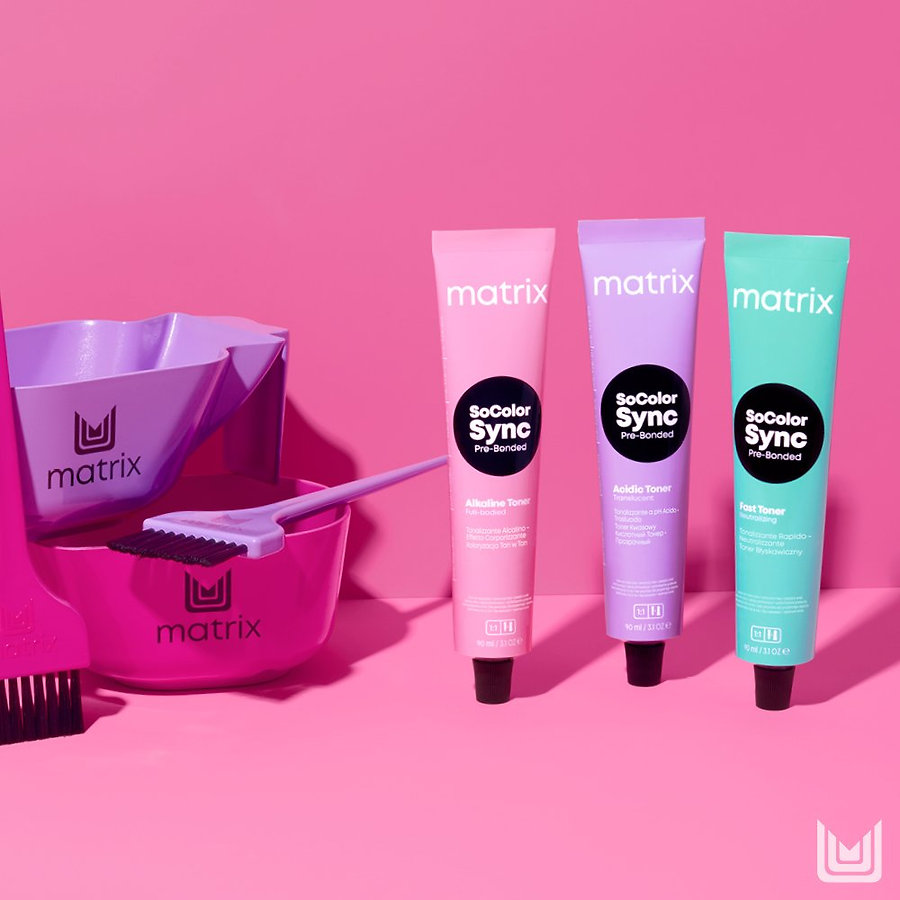 Don't be afraid to untie - the game with Matrix colors is just beginning! SoColor Sync Pre-Bonded, a de-mi permanent hair color with bond protection, delivers long-lasting toners for toning, color correction and tone-on-tone coloring. With technology that smoothes and strengthens the hair fiber and leaves the hair nourished, toned, smooth and full of shine. In addition, thanks to the integrated weave protection, you can dye even the most delicate hair fibers and push the boundaries of the thicker ones, without worrying about damaging them. All shades are perfectly matched to the shades of permanent colors SoColor Pre-Bonded, so as to ensure even results from roots to ends.