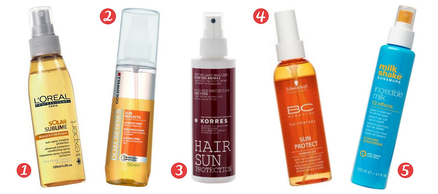 Glamot tip: 1) L'Oréal Solar Sublime Conditioning Spray is best for fine hair; 2) Goldwell Sun Reflects Leave-in Protect Spray with effective complex UV filters & panthenol; 3) Korres Hair Sun Protection Red Vine with 93.9% natural content; 4) BC Bonacure Sun Protect Shimmer Oil Spray with waterproof formula for sun protection during water pleasures; 5) Milk Shake Sun & More Incredible Milk with 12 incredible benefits for sun hair care!