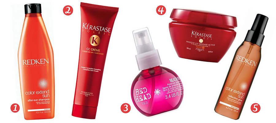 Glamot tip: 1) Redken Color Extend Sun After-Sun Shampoo for enhancing hair color after sun; 2) Kérastase Soleil CC Créme 3v1: to sun protect, repair and illuminate; 3) Bed Head Totally Beachin Protection Spray keeps coloured tresses vibrant, waterproof; 4) Kérastase Soleil Masque UV Defense for repair of coloured hair exposed to the sun; 5) Redken Color Extend Sun Reflective Glow waterproof formula for an all day hair protection!