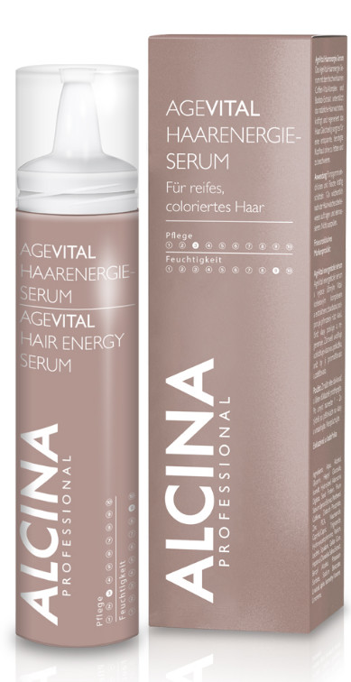 ALCINA's AgeVital Hair Energy Serum for hair growth with the highly effective caffeine vital complex and baobab extract is the anti-ageing hair care product for mature, coloured hair - it promotes natural hair growth and strengthens and regenerates fine, thinning hair. It also relaxes and calms the scalp, without making the hair greasy or weighing it down.