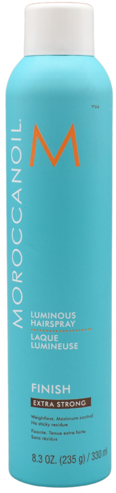 The extra strong, finishing hairspray provides long-lasting hold for the most demanding hairstyles. Moroccanoil® Luminous Hairspray Extra Strong is the ultimate setting hairspray that secures special-event styles: from sleek ponytails to chignons to red-carpet looks. This high-performance, argan oil-infused extra hold formula veils hair in a reflective shield of shine that fights humidity and frizz, yet brushes out easily and leaves no sticky residue.