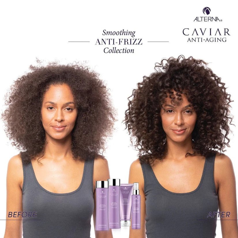 Indulge in luxurious care with the Alterna Caviar Smoothing Anti-Frizz Dry Oil Mist, a lightweight oil mist that instantly tames frizz, smooths unruly strands, and imparts radiant shine. Powered by the exclusive Climate Shield Complex, it protects hair from humidity for up to 8 hours, while caviar extract nourishes and restores vitality. Leaves hair silky soft, lightweight, and full of life, with no greasy residue.