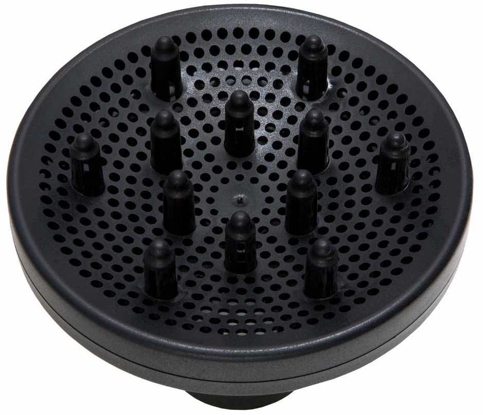 Attach the diffuser to the hair dryer while it is turned off and cool. Thanks to its precise fit, the attachment will snap firmly into place. For styling, select a low to medium airflow speed. Place hair into the diffuser and use gentle movements towards the scalp to create volume. After use, let the diffuser cool down on the dryer before removing it.