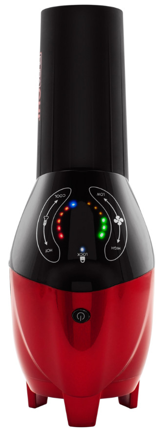 Cutting-edge hair dryer with a unique body style that allows for hand-free use.