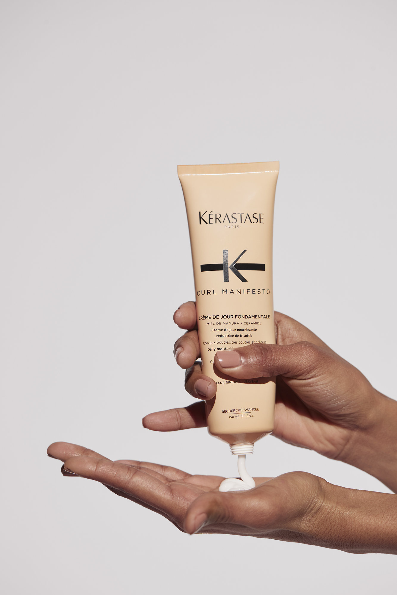 Pro tips! This lightweight cream when paired with the gelée is ideal to hydrate curls and encourage pattern definition without added weight. Rub the creamy texture into your fingers and work it from the ends up, while detangling knots with your fingers. Encourage the curls' pattern by scrunching them gently. When you scrunch the hair, be mindful to keep your palm flat, to promote bounce. Apply a small amount of cream on your fingertips to apply on the roots area for overall bounce before working it through the hair.