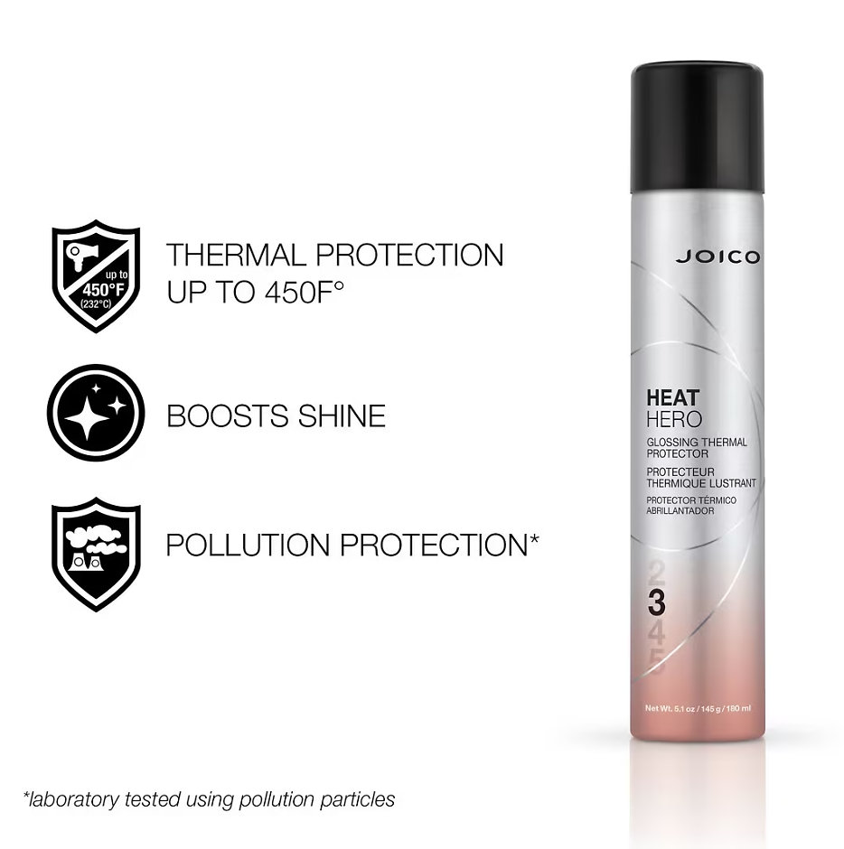 Joico Heat Hero is the ultimate hero in your styling routine – delivering instant heat protection up to 450 °F (232 °C), while adding brilliant shine and shielding your hair from environmental stress. This lightweight spray forms an invisible barrier between your hair and the heat of styling tools like straighteners, curlers, or blow dryers. It also helps repair split ends through heat activation and defends hair against pollution.
