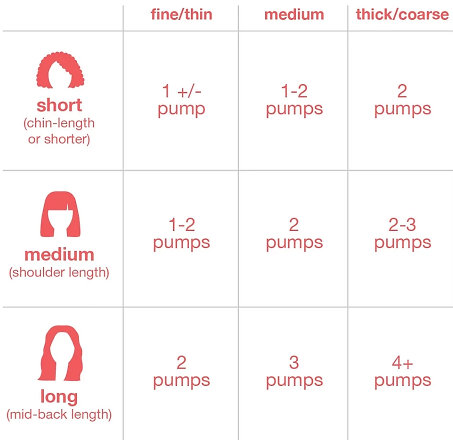 - Work evenly into hair from ends to roots, one pump at a time.