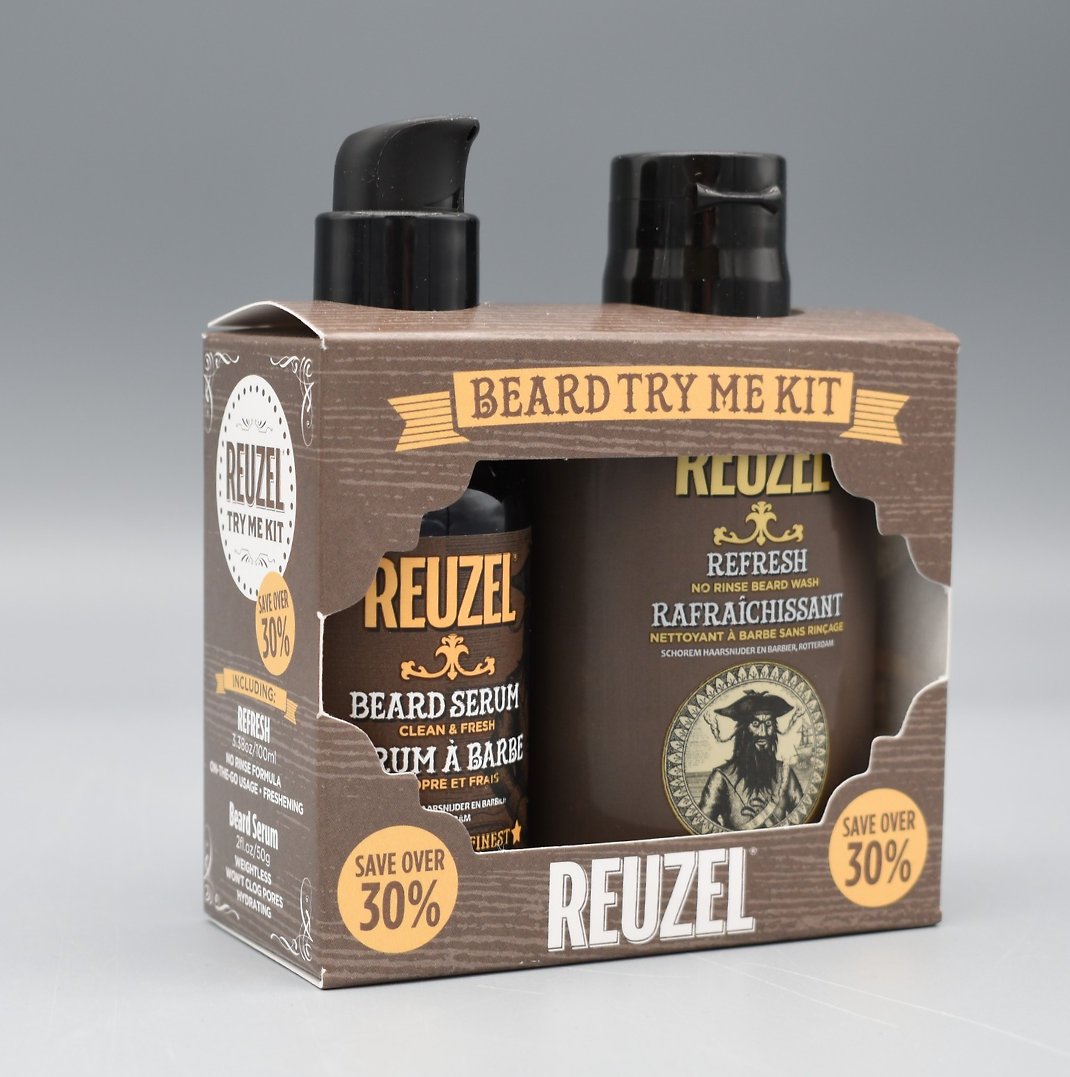 The practical Reuzel Clean & Fresh Beard Try Me Kit offers essential care for healthy, clean and well-groomed beard. It is ideal for men who want to try Reuzel products or are looking for a compact set for travel. The combination of a no-rinse beard wash and a softening beard serum helps refresh, hydrate and keep the beard well-groomed without weighing it down.