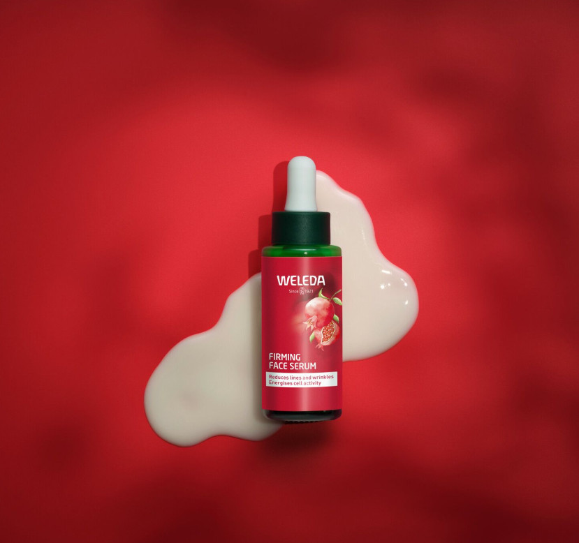 Firming serum based on gel emulsion with pomegranate and maca-peptides for beautiful and hydrated skin.