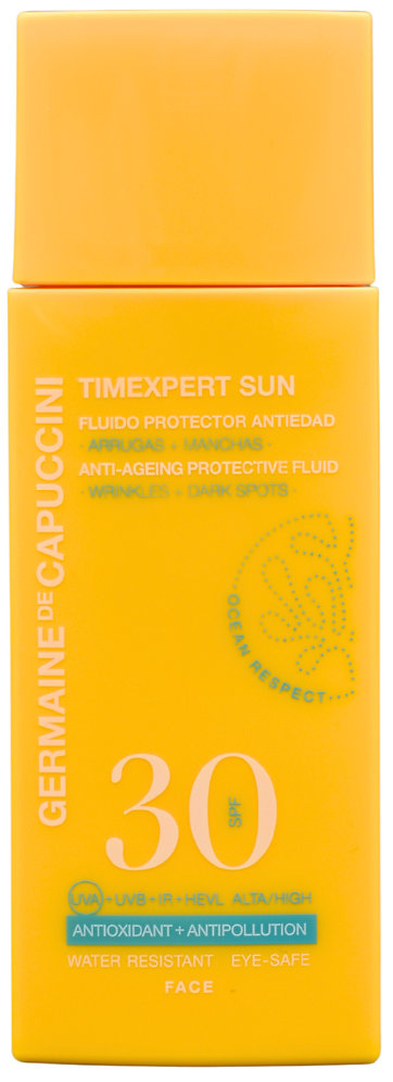 Protect your skin from the sun and aging in one step. Germaine de Capuccini Fluido Protector Antiedad SPF30 is a lightweight fluid that offers effective protection against UV rays, moisturizes, and fights wrinkles.