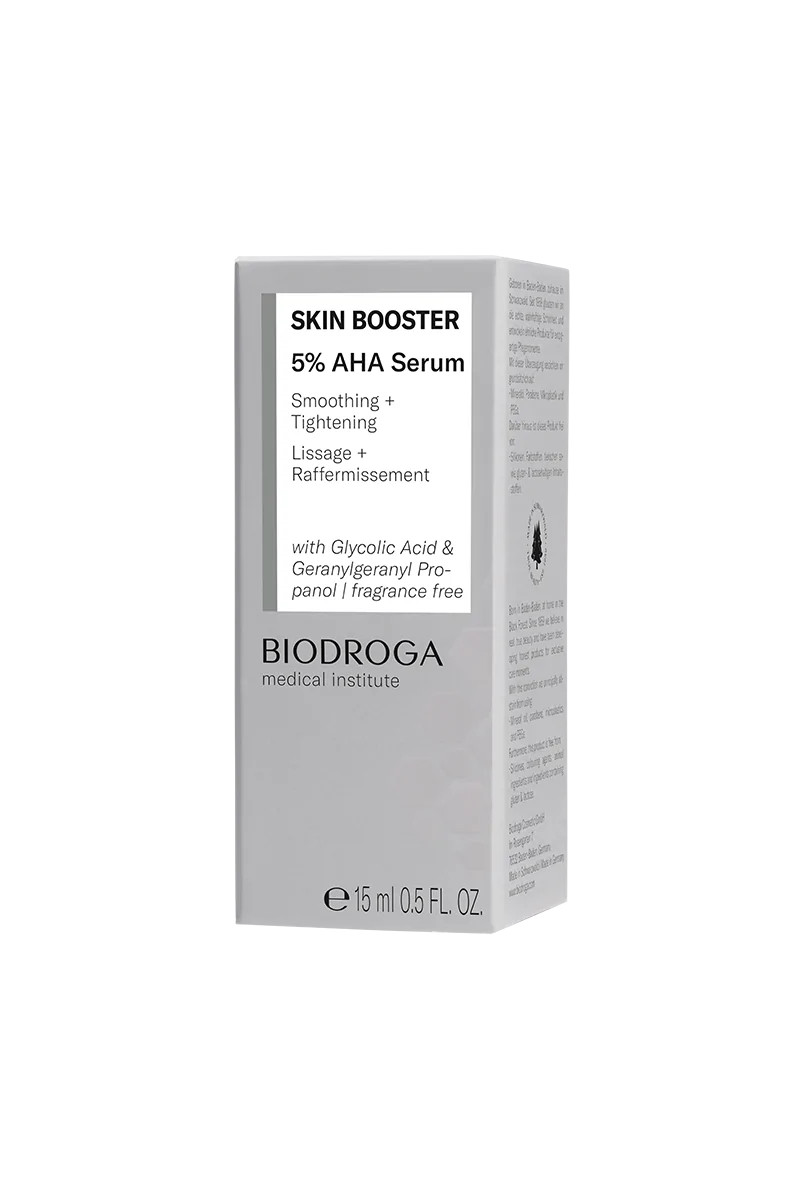 The innovative serum with a complex of 5% glycolic acid (AHA acid) and the patented active ingredient geranyl geranylpropanol (GGP) has been specially developed to slow down the process of skin aging and mitigate signs of aging. Collagen and hyaluronic acid synthesis are supported, lines and wrinkles are actively minimized, and the skin appears visibly smoothed.