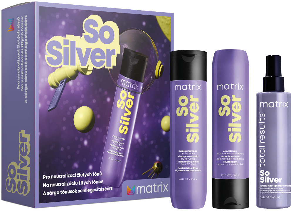 An icy blonde with no unwanted undertones and 10 extra beautifying benefits? With the So Silver gift pack from Matrix it's possible! Designed for owners of blonde, silver and grey hair, this treatment will rid your tresses of unwanted yellow undertones, strengthen them and add shine.