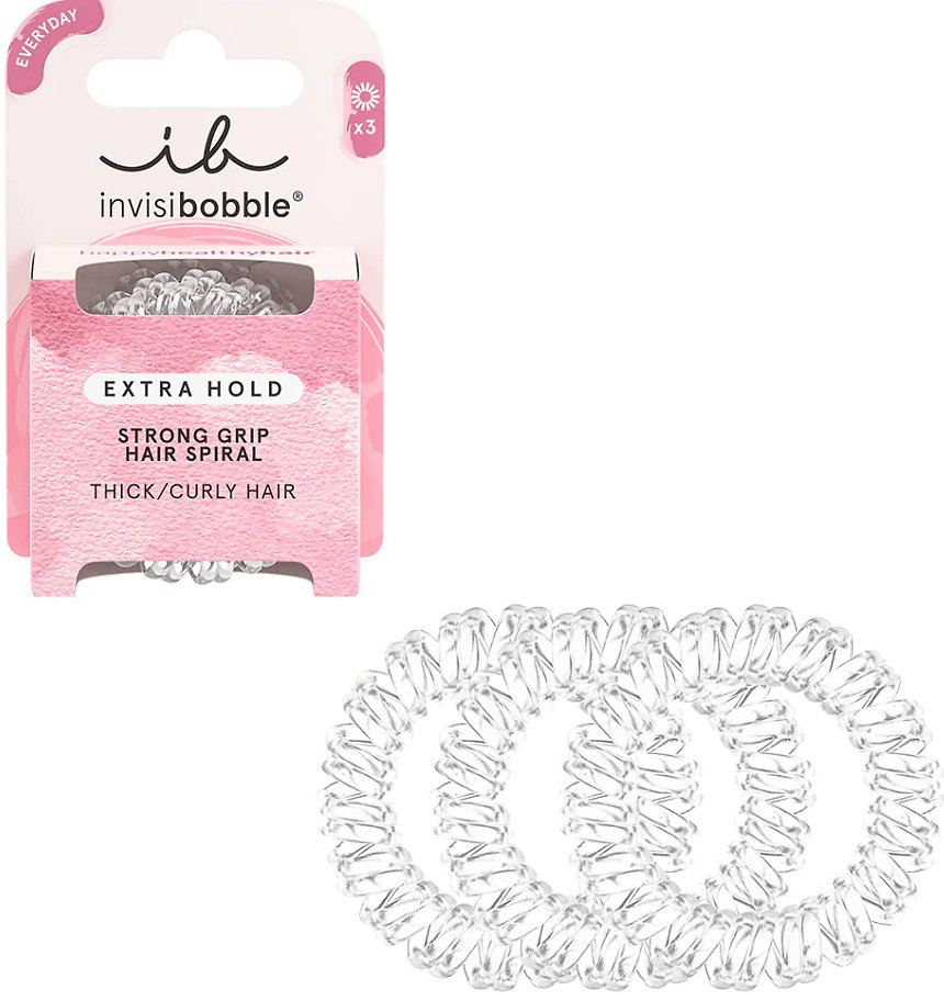 Looking for a hair tie that can handle even the thickest and curliest hair? Invisibobble Extra Hold is the perfect solution! These spiral hair ties are designed to provide maximum hold without discomfort. With HairLoveTech™ technology, they protect your hair from breakage and pressure marks. Ideal for everyday wear, sports, or special occasions. The transparent Crystal Clear design complements any style.