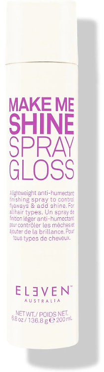 Complete your styling with MAKE ME SHINE SPRAY GLOSS, a lightweight moisture-resistant spray that tames fine frizzy hair and gives it a dazzling shine. Simply spray onto your hair after styling and be amazed at the huge difference just a little shine can make!