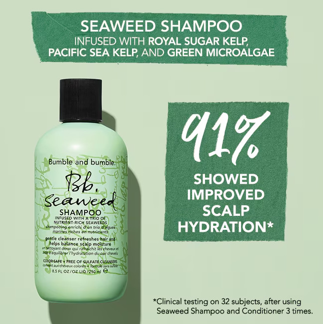Clinically proven scalp hydration – 91% improved hydration after 3 uses with Seaweed Conditioner