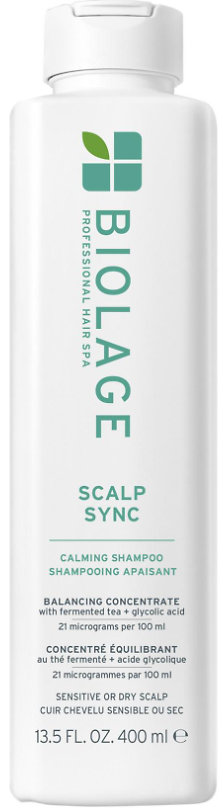 Does your scalp need soothing and hydration? Biolage ScalpSync Calming Shampoo is a gentle shampoo specially designed for dry and sensitive scalps. With a combination of fermented tea and glycolic acid, it soothes irritation, hydrates, and leaves hair soft and shiny.