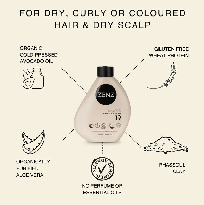 A softening and nourishing clay shampoo, fragrance-free, suitable for all hair types – especially dry, curly and coloured hair. Formulated with 99% natural ingredients and 52% certified organic ingredients. Hypoallergenic, gentle on both scalp and the environment, and ideal for pregnant women, children and those sensitive to fragrances.