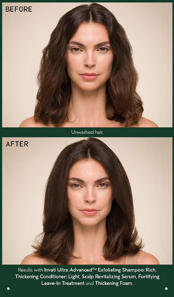 Light Exfoliating Shampoo for Fine to Medium-Thick Thinning Hair. A gentle cleansing shampoo that helps remove impurities from the scalp with salicylic acid derived from honeysuckle. The first step of the 4-step Invati Ultra Advanced™ system, proven to reduce hair loss by up to 77%.*