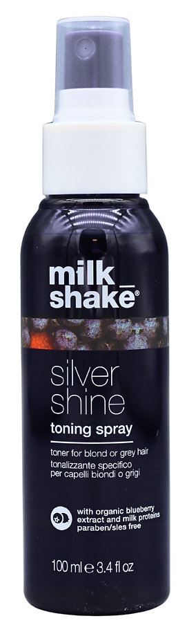 Fast tone correction without washing. milk_shake® Silver Shine Toning Spray is a leave-in toning spray with violet pigments that helps neutralize unwanted yellow and golden tones in blonde, grey and white hair. At the same time, it nourishes, hydrates and improves hair manageability, leaving it fresh, soft and radiant. Ideal for use between washes and as a daily color refresh.