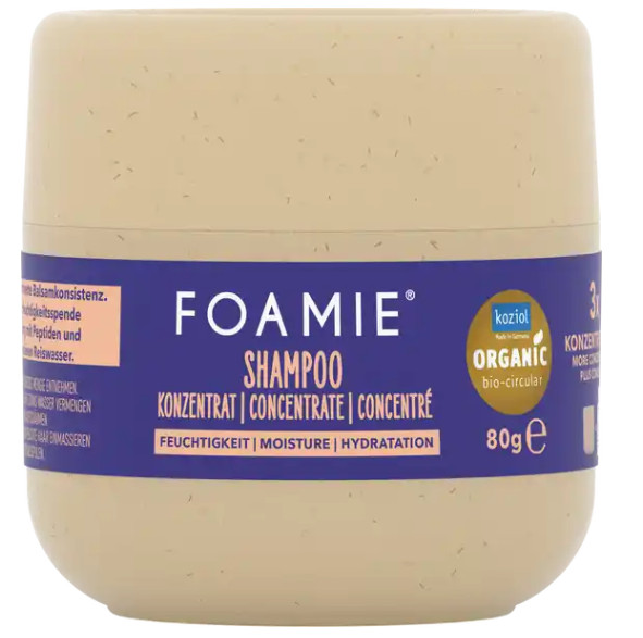 Foamie Concentrate Shampoo Repair is an innovative shampoo concentrate designed for intensive care of damaged hair. Its unique balmy consistency makes it three times more concentrated than conventional liquid shampoos, ensuring effective cleansing and hair regeneration.