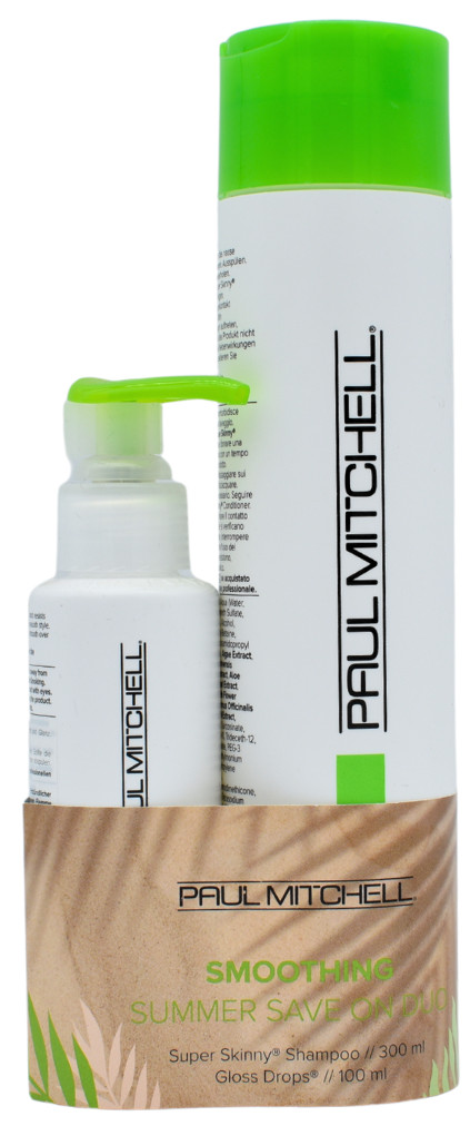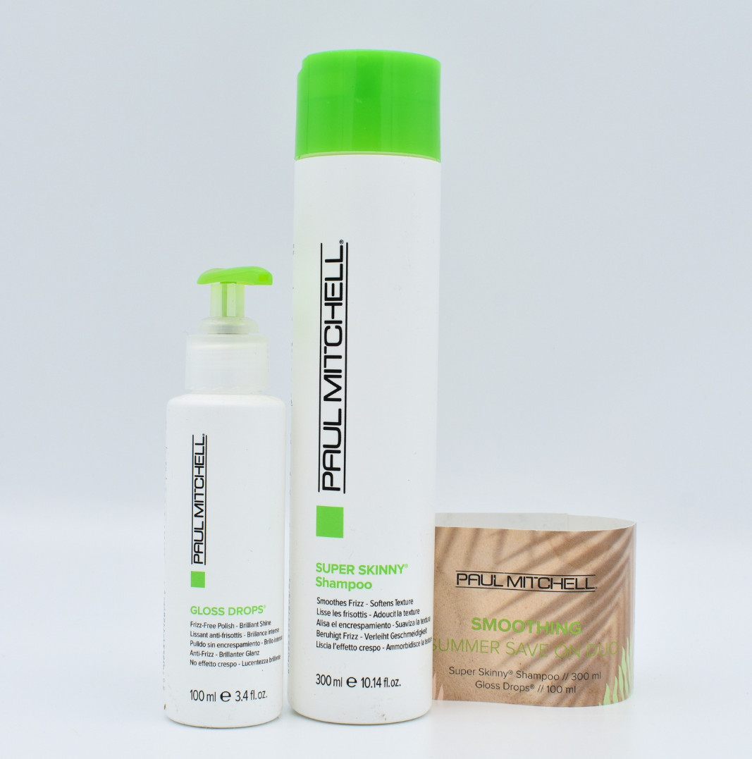 Enjoy smooth, glossy, and touchably soft hair even on the hottest summer days with this value duo from Paul Mitchell. The Smoothing Summer Save On Duo combines two beloved products from the Smoothing range – Super Skinny Shampoo and Gloss Drops. Together, they tame frizz, speed up drying time, and deliver a mirror-like shine without weighing the hair down.