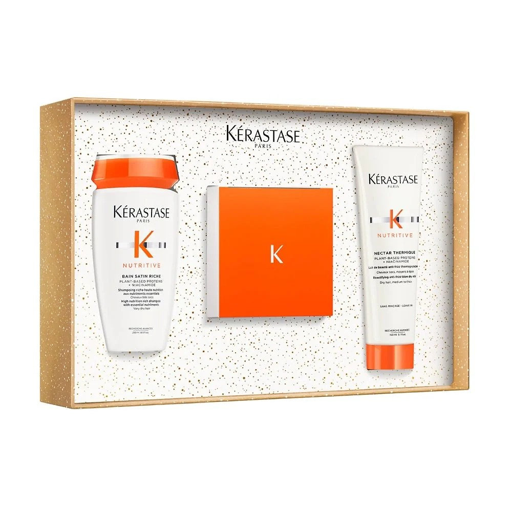 Treat your hair to a professional dose of hydration and nourishment with the limited-edition Kérastase Nutritive set. This luxurious three-step routine restores softness, shine, and elasticity to dry, brittle, and stressed hair — exactly what you need for a salon-like result at home. The set is built around ultra-nourishing ingredients such as plant-based proteins and niacinamide, which help strengthen the hair fibre and provide long-lasting protection against dryness.