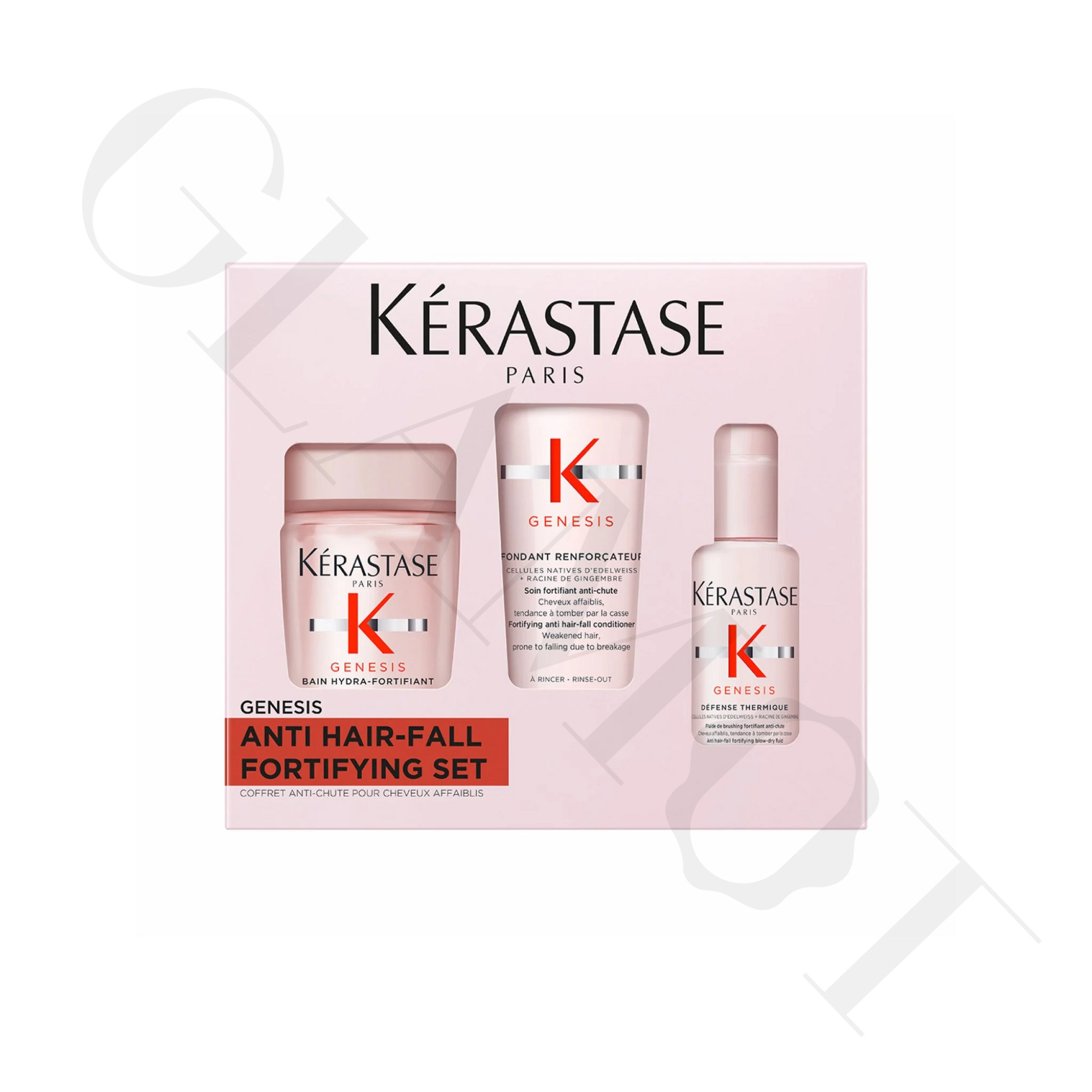 Discover the world’s most luminous haircare essentials. The Kérastase Genesis Travel Set gives you the perfect opportunity to experience some of the brand’s most beloved products. This strengthening routine is designed to revive weakened hair prone to breakage and hair fall, restoring its vitality, softness, and resilience.