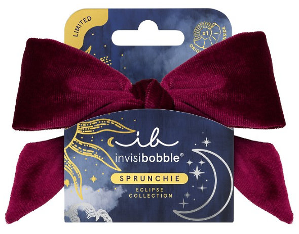 The SPRUNCHIE Velvet Grace from the limited Eclipse collection combines modern design with maximum comfort. Beneath the soft velvet fabric lies the original invisibobble spiral, ensuring a firm yet gentle hold – without pulling, breaking, or leaving marks in the hair. The rich red velvet adds a touch of luxury, while the elegant bow makes it a stylish detail for both everyday looks and special occasions.