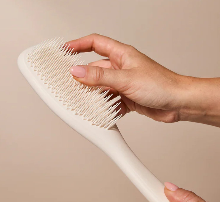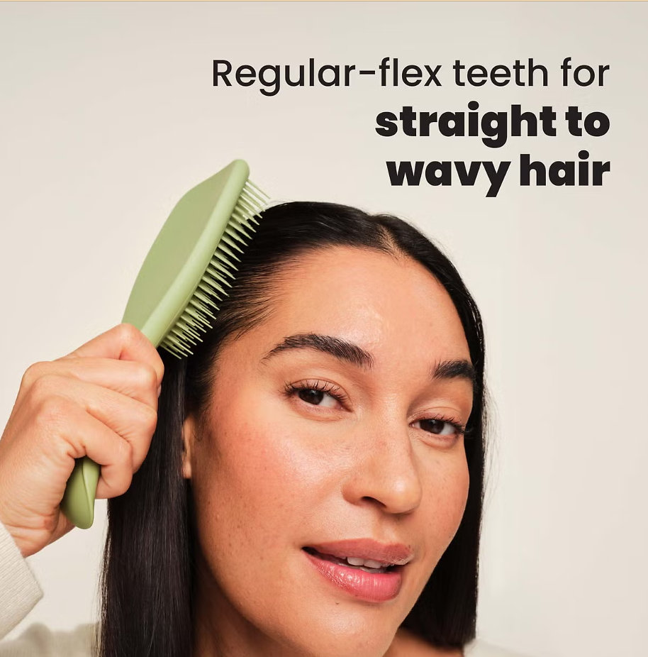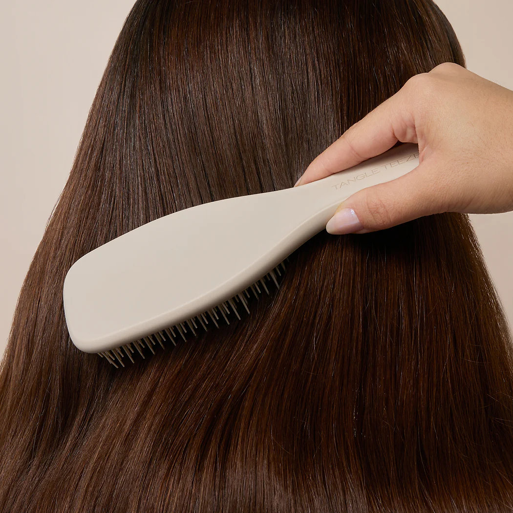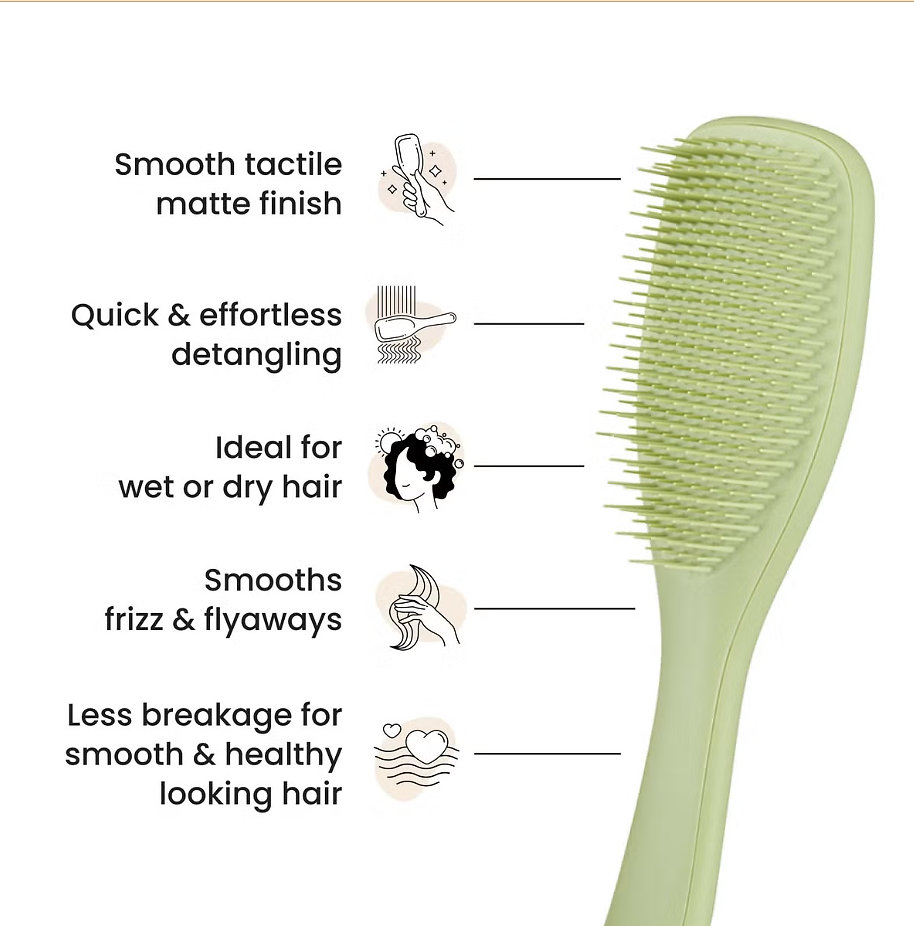 Make detangling your hair a pleasure with the Ultimate Detangler Matte Brush. Thanks to its patented two-tiered teeth technology – long, flexible teeth to gently detangle knots and shorter teeth to smooth the hair – this brush easily glides through both wet and dry hair without pulling or breakage. Its matte finish and ergonomic handle ensure a comfortable grip, while your hair stays smooth, shiny, and tangle-free.