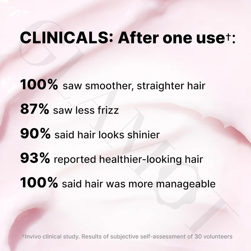 Thanks to its innovative technology, the blend of oils (including squalane and rice bran oil), quinoa proteins, and natural polymers penetrates deep into the hair cuticle, filling cracks and smoothing uneven texture. Within just 3–5 minutes, it forms a lightweight protective layer that shields against humidity, prevents frizz, and adds brilliant shine.
