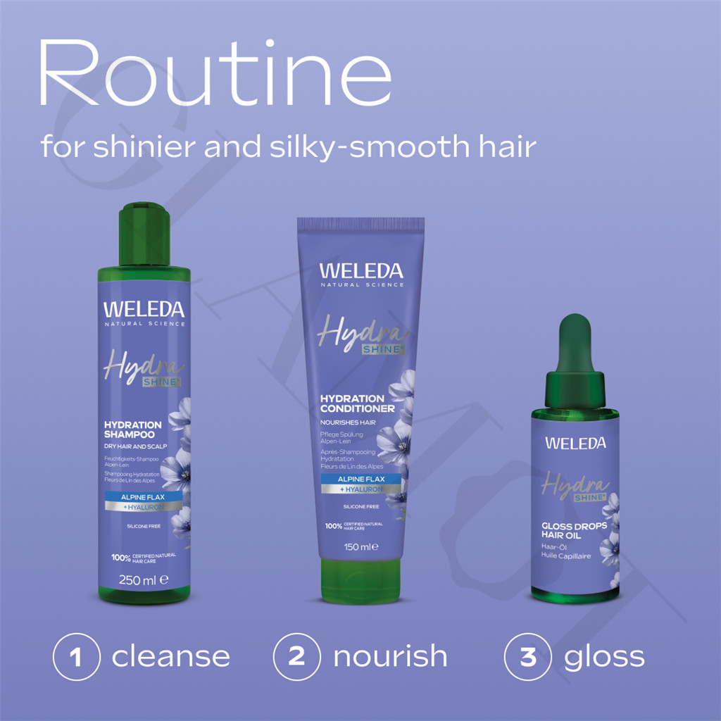 - For best results, use after Hydra Shine Shampoo and finish with a hair oil or serum Weleda Gloss Drops Hair Oil.