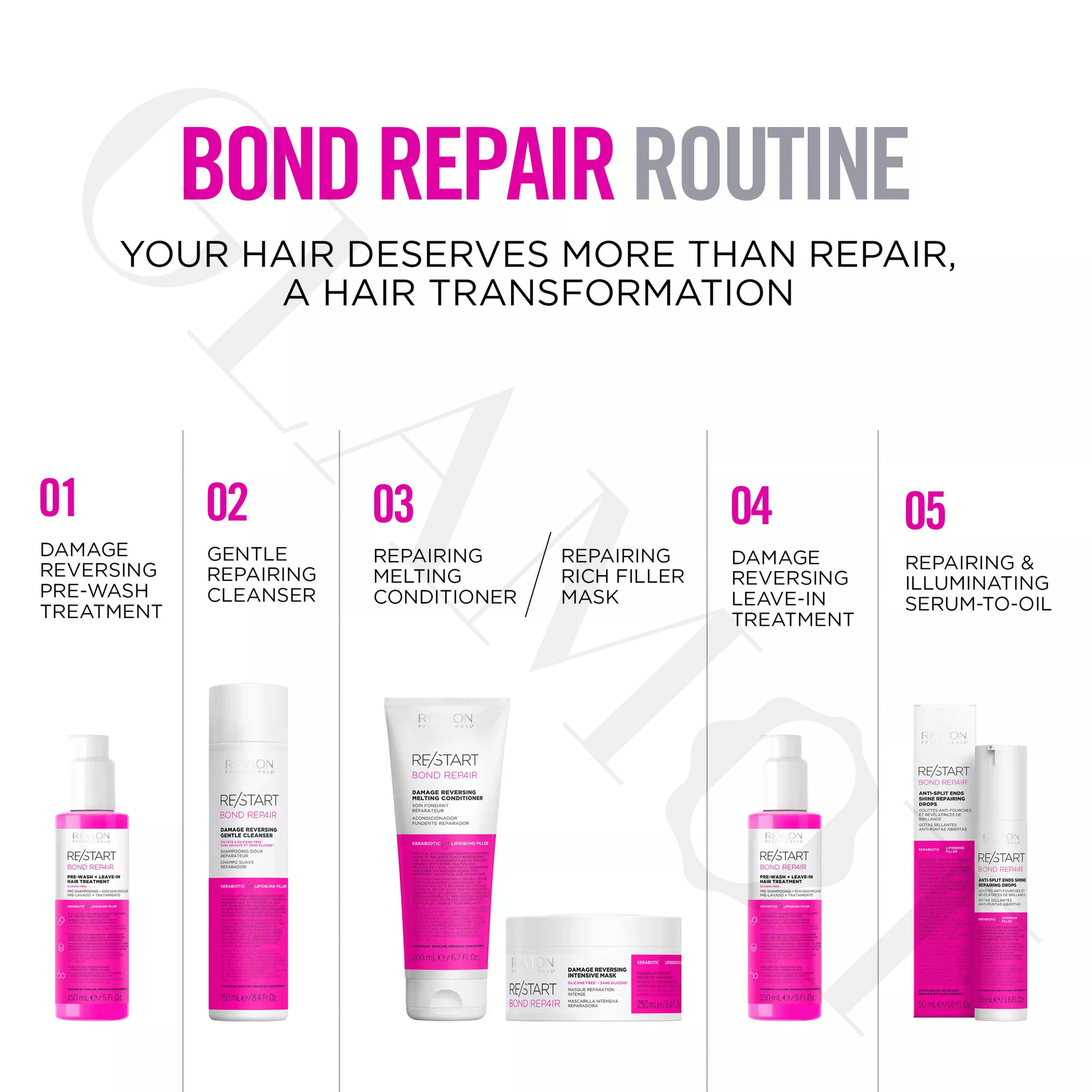 **Brand claim Revlon Professional: up to 12× stronger and up to 10× smoother hair after one use, based on the brand’s internal tests when using the RE/START Bond Repair line.
