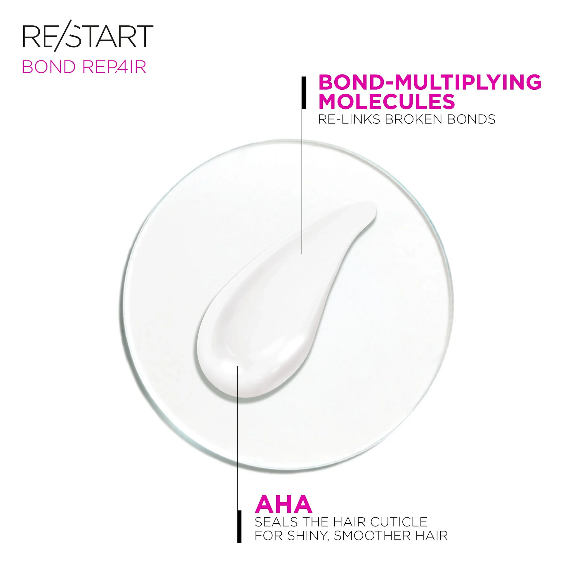 Bond-multiplying molecules – an active system that targets weakened bonds inside the hair and helps rebuild them for a stronger fibre.