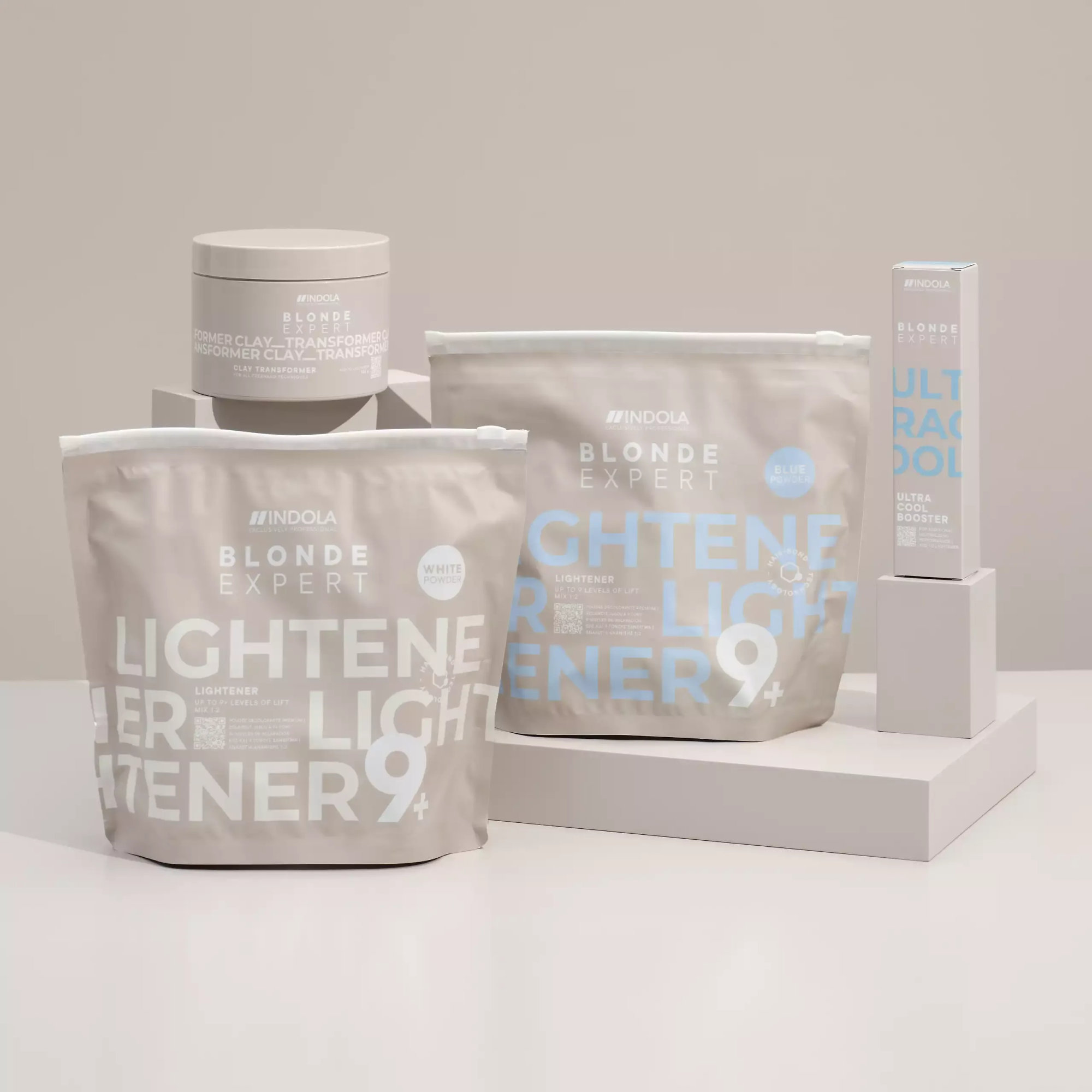 The lightening powder Indola Blonde Expert Lightener 9+ and developer Indola Cream Developer are not included and must be purchased separately.
